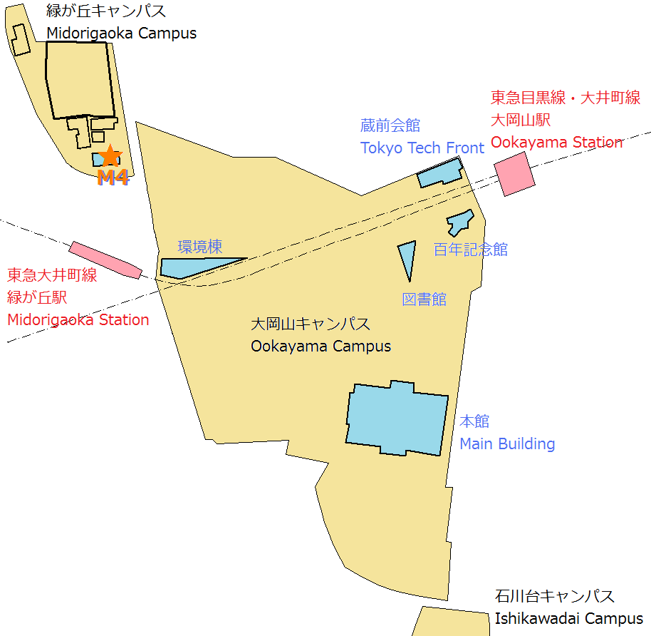 東急大井町線 緑が丘駅 徒歩3分(大岡山駅からキャンパス内 徒歩10分) Three minutes walk from Midorigaoka station on Tokyu Ooimachi Line will bring you to our lab. | |||