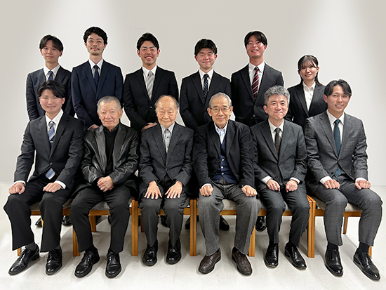 前列左から 大野登羽君 白澤宏規副会長 坂本一成会長 河野晴彦副会長兼幹事長 五十嵐規矩夫副会長